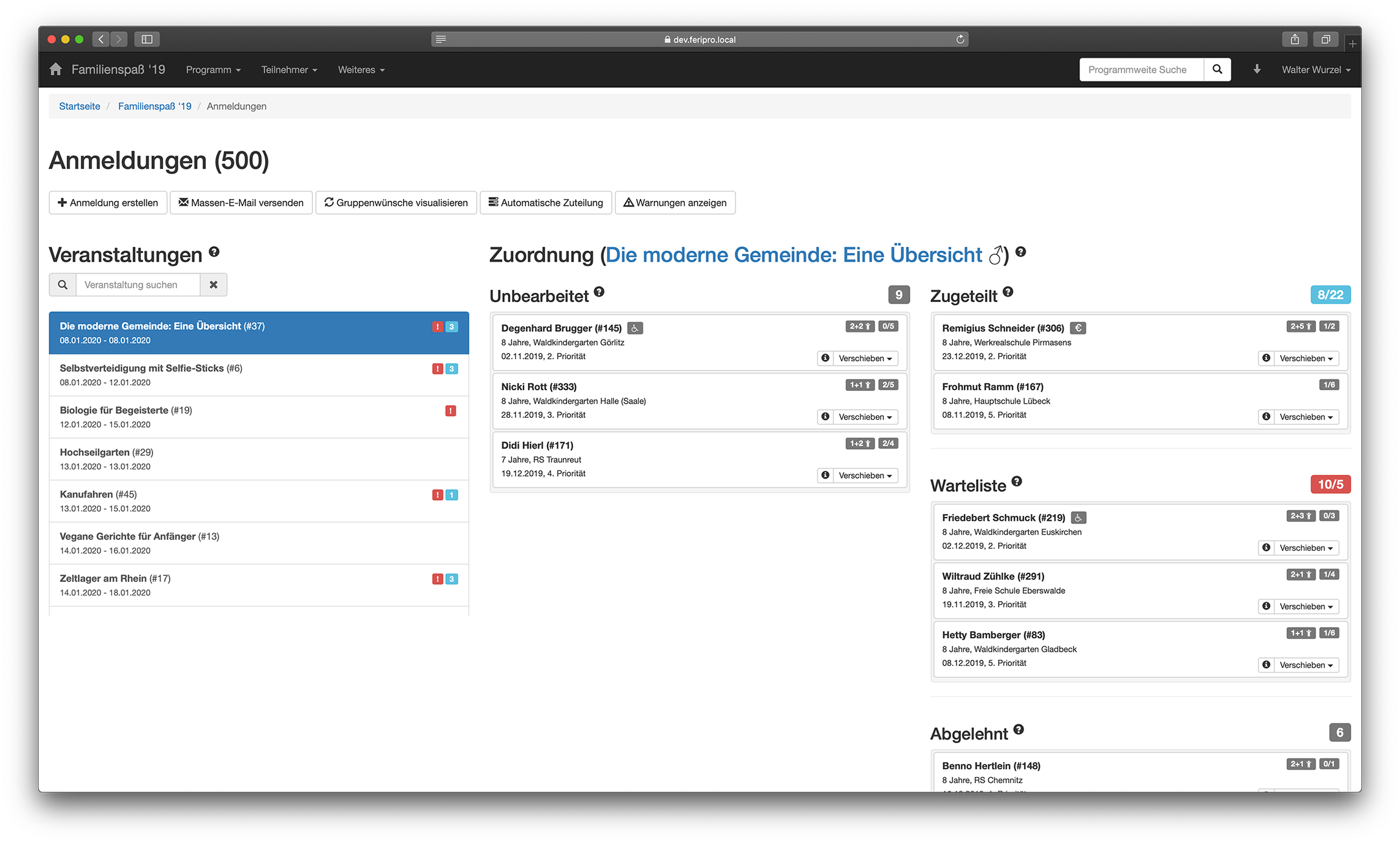 In dieser Übersicht finden Sie die Anmeldungen aller Teilnehmer.