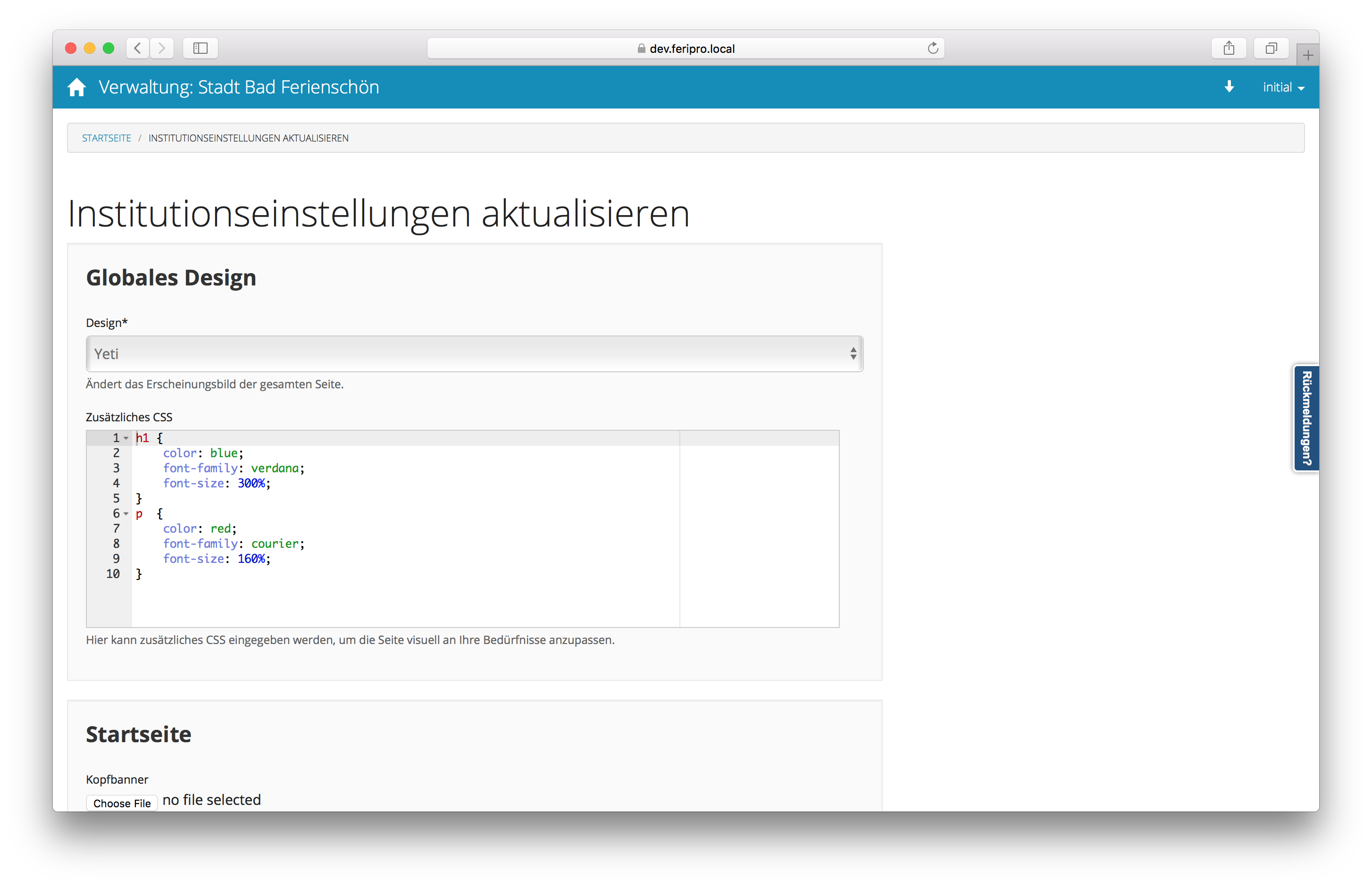 In diesen Einstellungen können Sie Ihre Startseite personalisieren. Nachdem Sie mit den Einstellungen zufrieden sind, kehren Sie zurück in die Verwaltungsansicht.