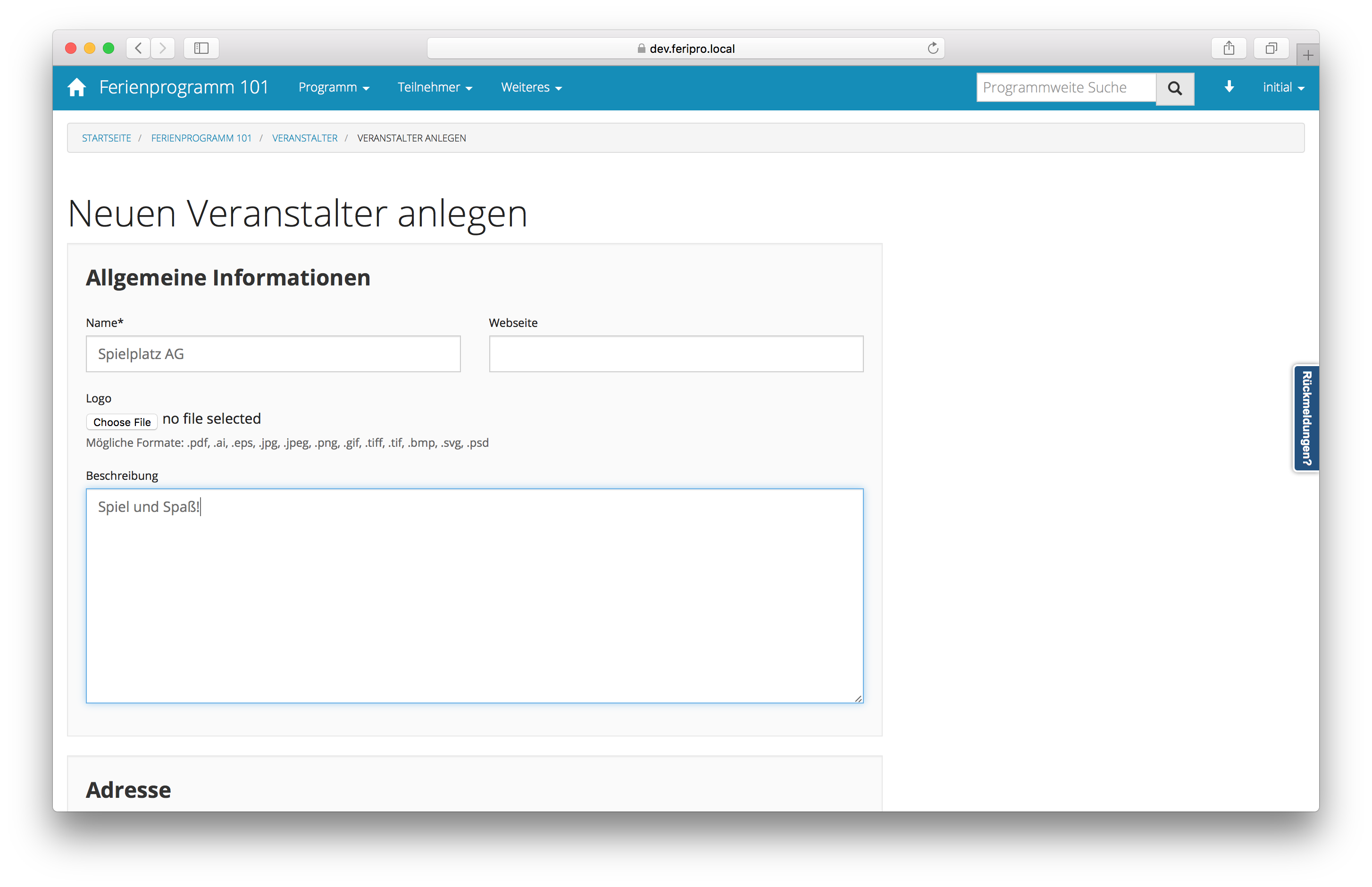 6. Ein Veranstalter hinzufügen
