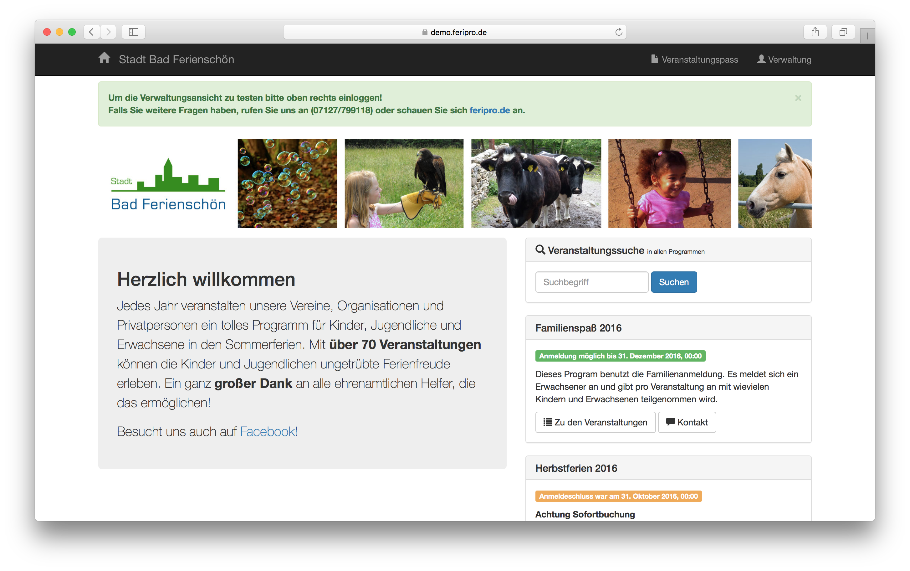 Glückwunsch! Sie haben die Einführung erfolgreich abgeschlossen und sind nun mit einem voll funktionsfähigen Ferienprogramm ausgestattet. Für mehr Informationen steht Ihnen der Rest der Dokumentation stets zur Verfügung. Wir wünschen noch viel Erfolg.