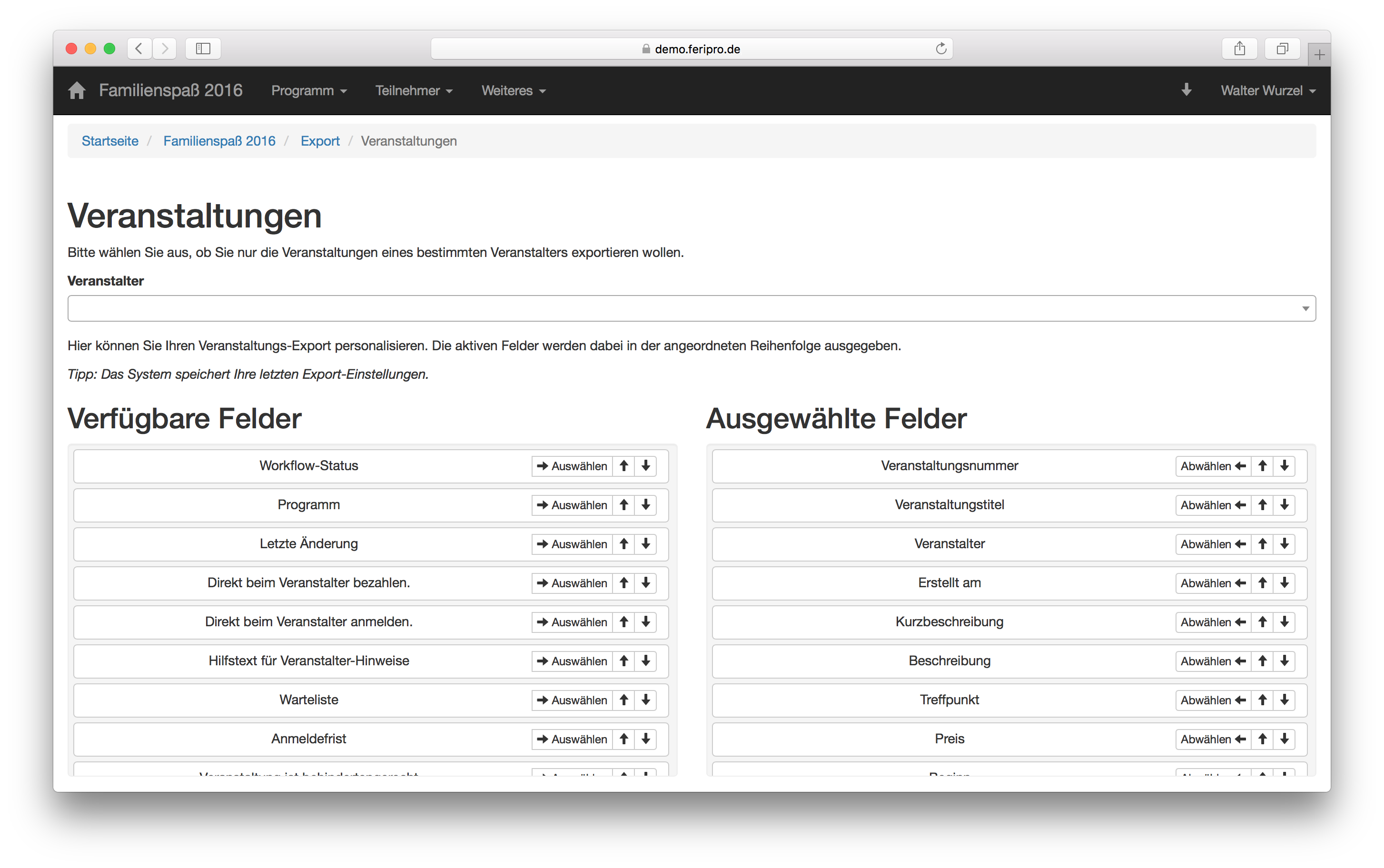 Hier können Sie die Daten aller Veranstaltungen des Programmes oder eines einzelnen Veranstalters exportieren.