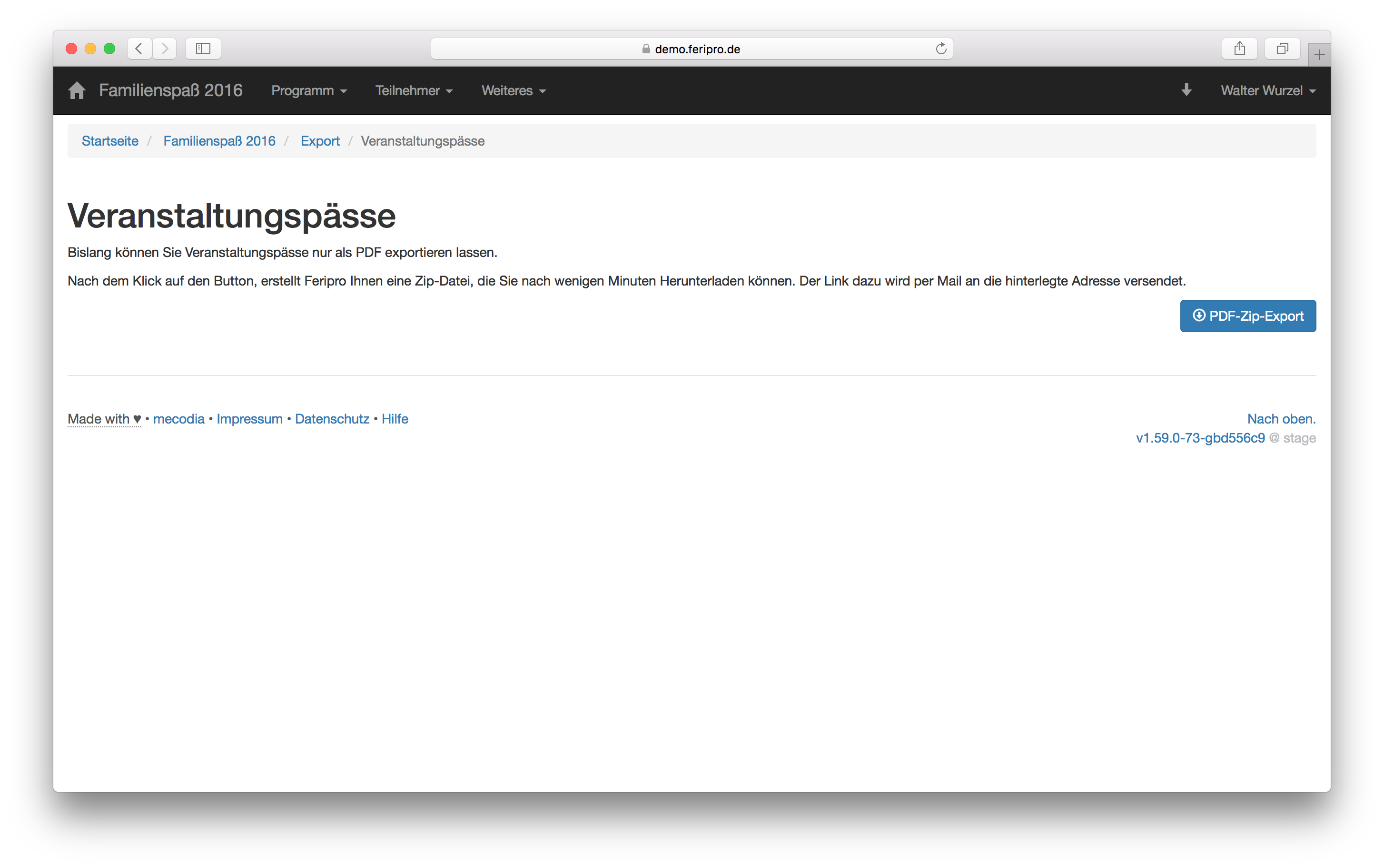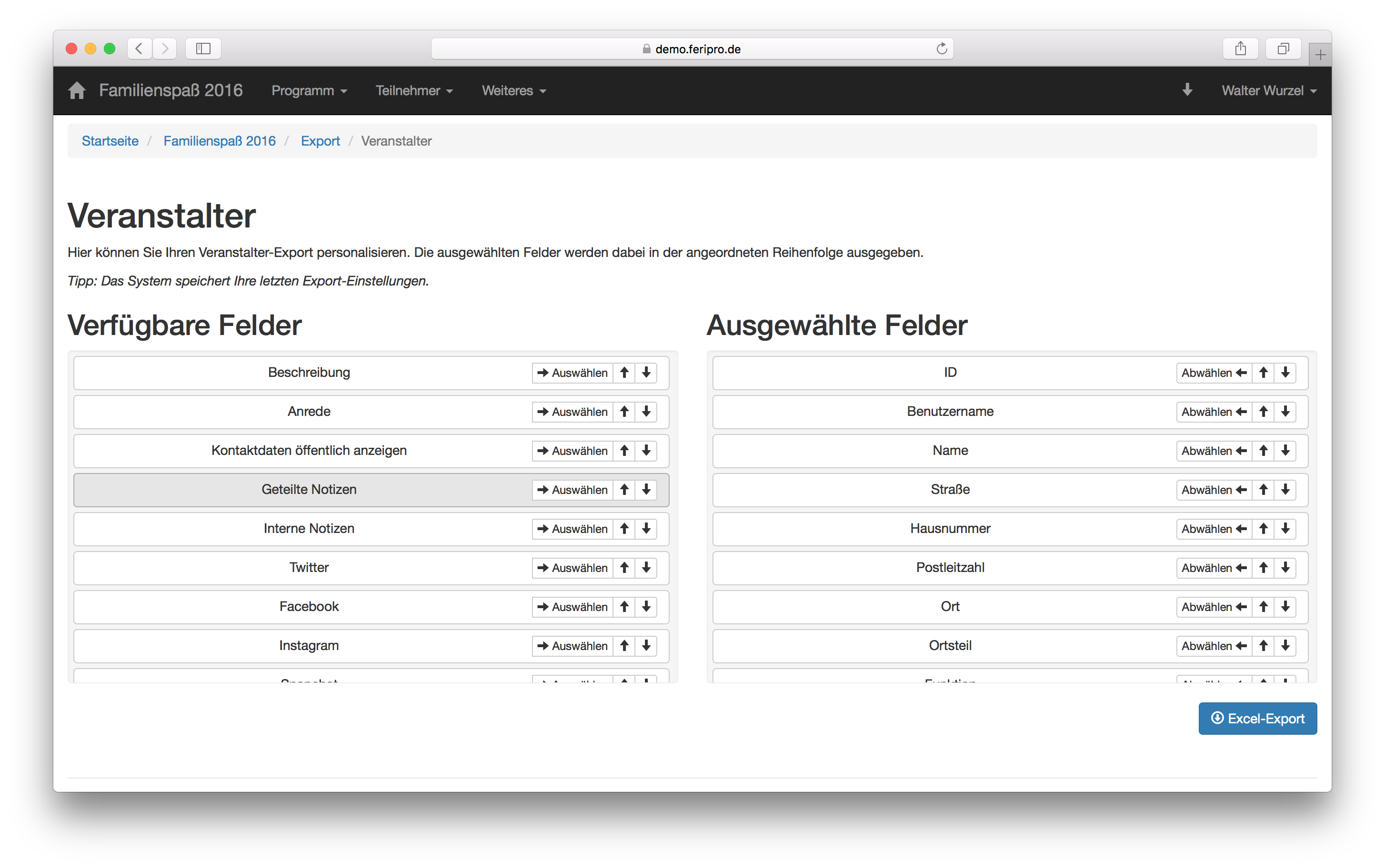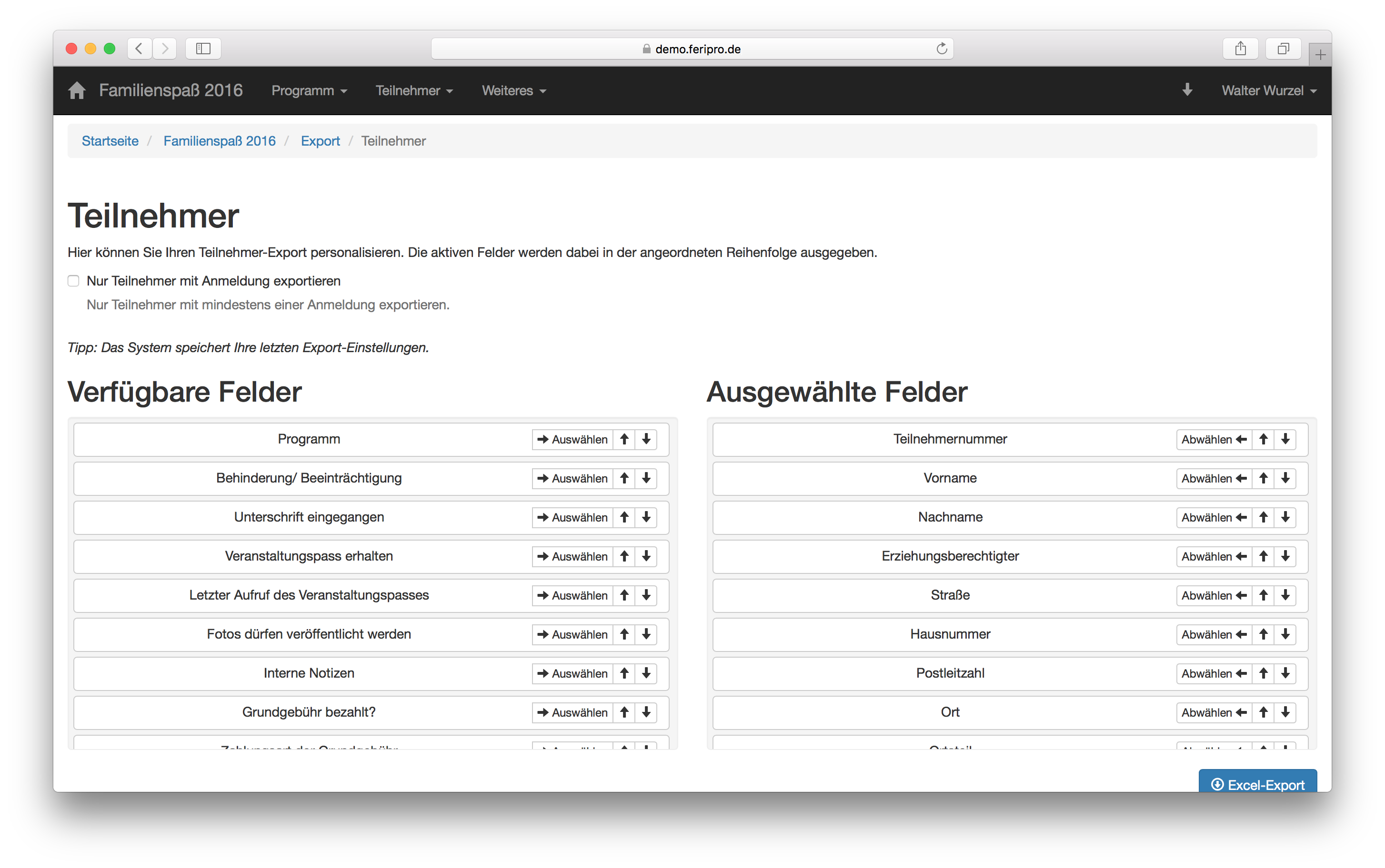 Hier können Sie die Daten aller Teilnehmer des Programmes exportieren.