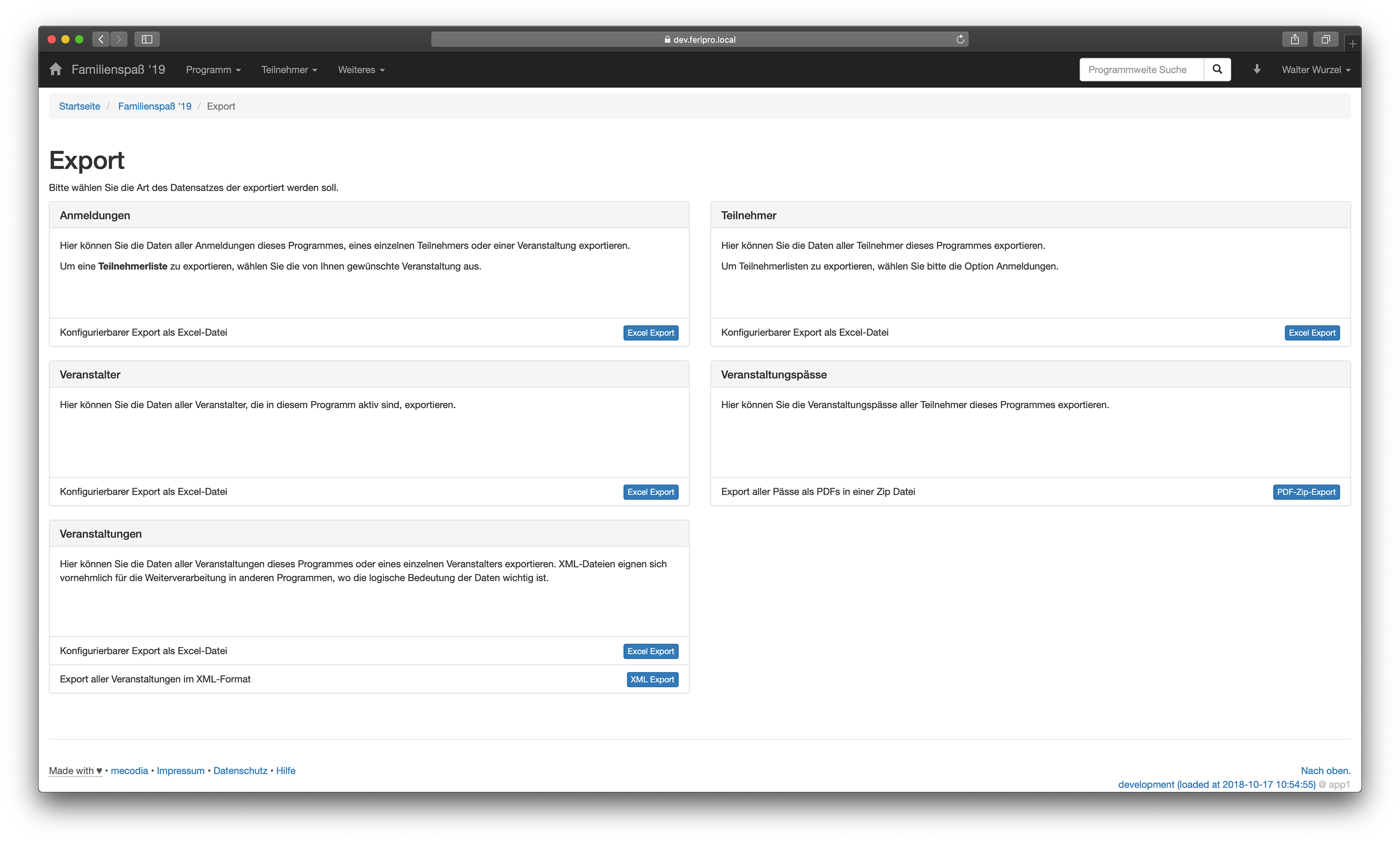 Hier können Sie die Daten aller Veranstalter, die in dem Programm aktiv sind, exportieren.
