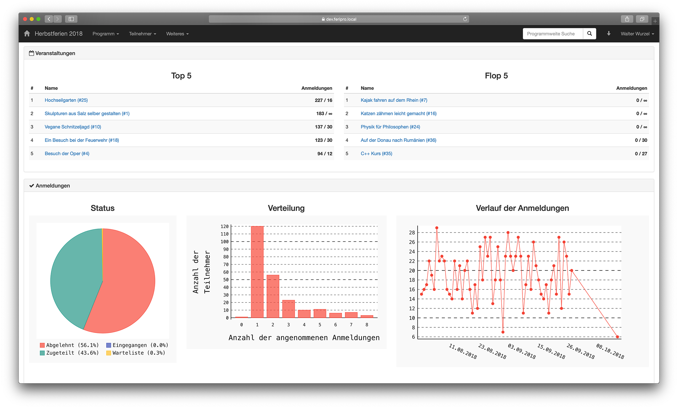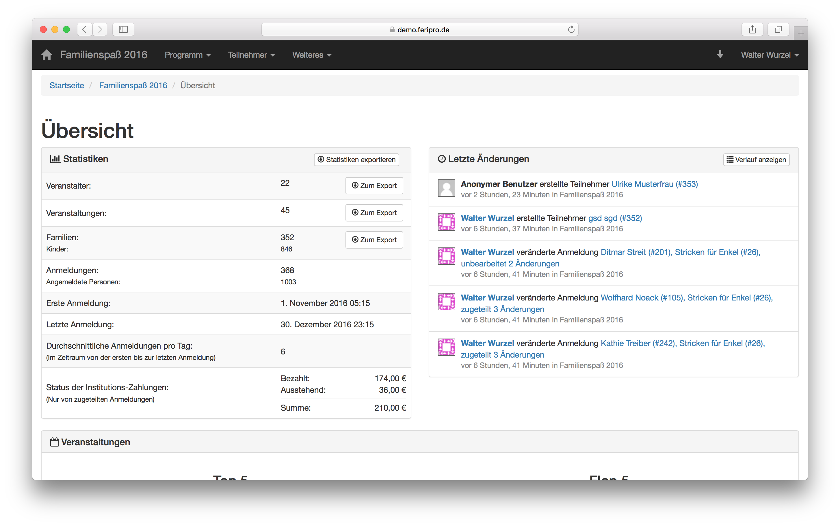 - Teilnehmer: Unter dem Punkt Teilnehmer finden Sie alles was mit einem Teilnehmer zu tun hat, d.h. Informationen zu Teilnehmer und deren Anmeldungen.