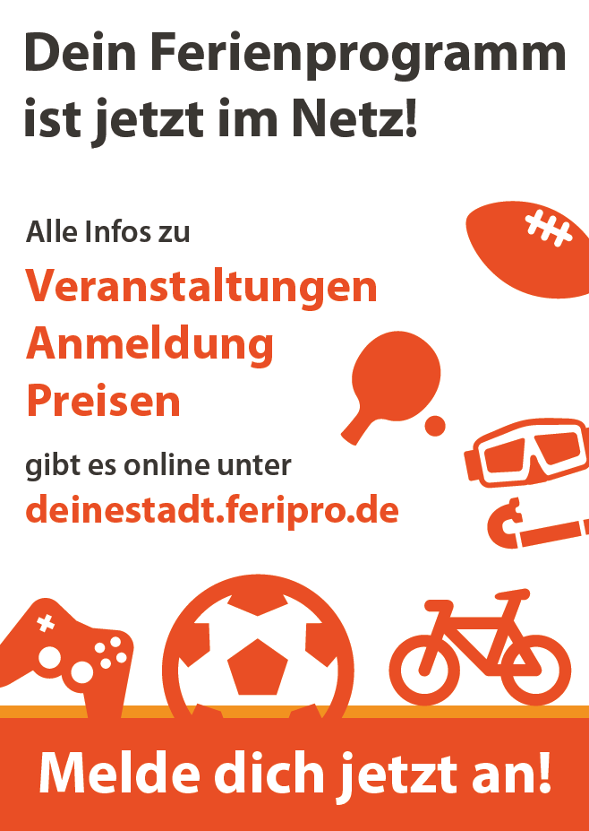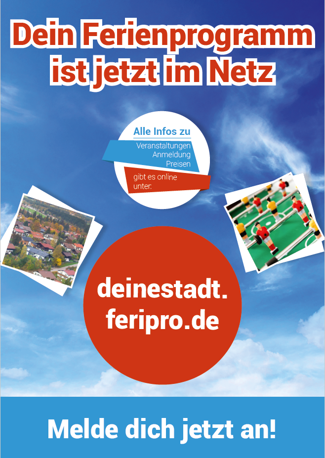 Institutionen haben gute Erfahrungen mit Flyern gemacht, auf denen die Internetadresse steht. Dies spart Druckkosten und die Zeit bei der Erstellung eines Programmhefts. Einen exemplarischen Flyer können Sie hier herunterladen: Feripro-Flyer 1 - Feripro-Flyer 2. Wenn Sie das Support-Paket gebucht haben, dann individualisieren wir für Sie gerne den Flyer. Kontaktieren Sie uns dazu unverbindlich.